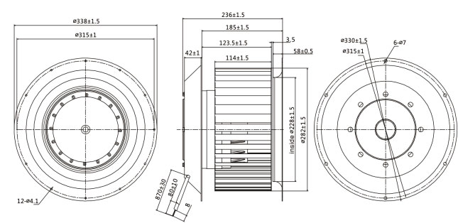 单进风前倾式糖心VLOG官方视频根据风机外形可分为蜗壳前倾式糖心VLOG官方视频和常规前倾式糖心VLOG官方视频两种。蜗壳前倾式糖心VLOG官方视频共有120mm、133mm、140mm、150mm、160mm、180mm等六种。常规前倾式糖心VLOG官方视频有200mm、225mm、250mm、280mm、315mm、355mm、400mm、450mm等八种。