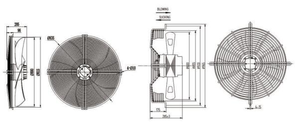 这是一款大型6极和8极三相异步运转的轴流风机,与之相对应的是每小时25500立方米和18500立方米的超大风量。该款产品输入功率分别为900W和680W,具有风量大,转速低、调速范围广、运行平稳可靠等优点,电机引出线一般为1.5米,适用于空气流动量大而压力要求较小的场合,如作为中央空调风机、高低温箱等大型通风设备的配套产品。