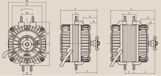 该款电机装有两个支架安装角,一侧的螺丝间距为18mm,与之相对应的一侧螺丝间距为26mm。根据电机铁芯厚度和绕线参数的不同,共有输出功率为3W到34W等9种型号的电机供客户选择。额定电压有220~240V,50/60Hz和 110~115V,50/60Hz两种。对于客户需求的不同的引出线长度、前后端盖的样式、后端盖是否带螺纹孔、特殊的使用环境等均能按要求设计定做。为最大限度的发挥电机性能,我司可提供风叶、安装支架、网罩、法兰等产品附件,购买前请详细说明风叶气流风向和倾斜角度。产品可作为商业冷柜冷库、制冰机、冷风机、冷水机、冷凝机组、中央空调、取暖器、啤酒机、搅拌机等设备的理想配套产品。